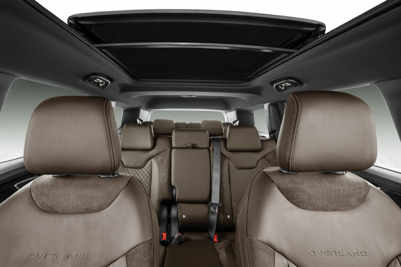 A versão Overland traz acabamento exclusivo com painel revestido em suede preto e costura em tom cobre. Existem ainda detalhes cromados com tom cobre. A forração dos bancos conta com tom marrom.