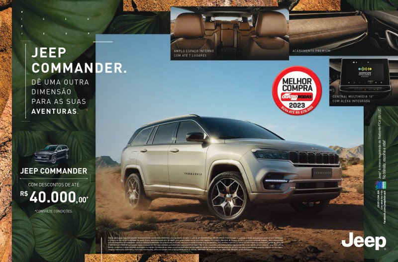 Outro líder de categoria que não poderia ficar de fora, é o Commander. O SUV de sete lugares conhecido pelo seu elevado nível de sofisticação, conforto e tecnologia está com descontos de até R$ 40 mil. Para completar, os importados Jeep Gladiator está a partir de R$ 424.990 e o Compass 4xe por R$ 294.990.