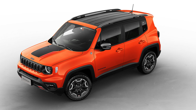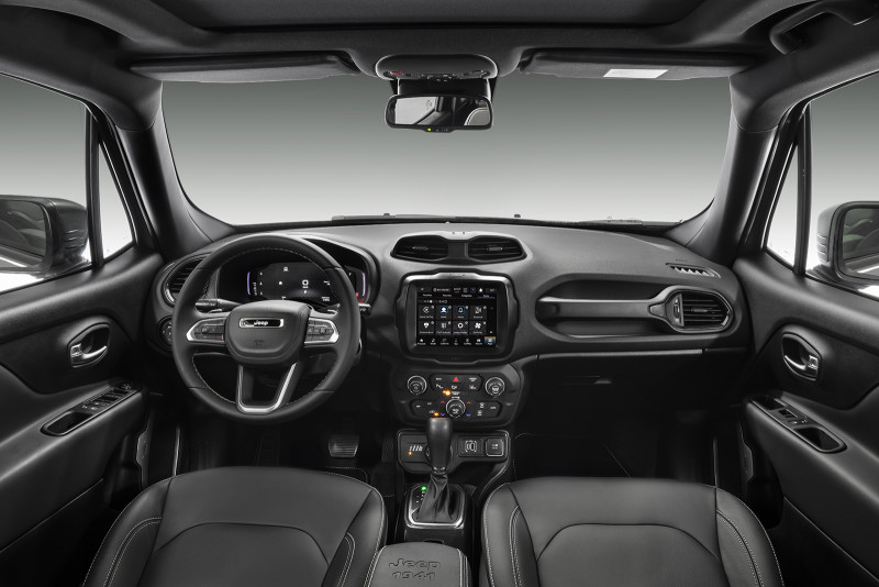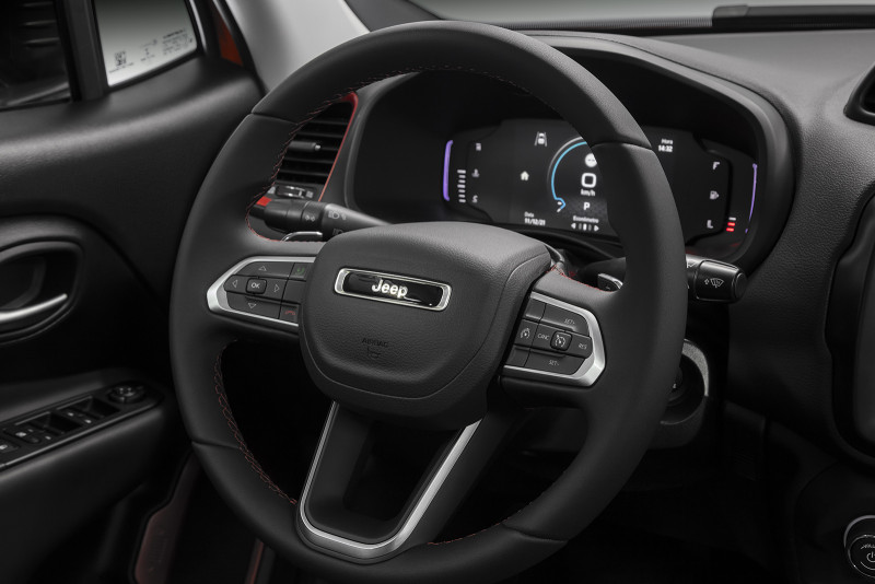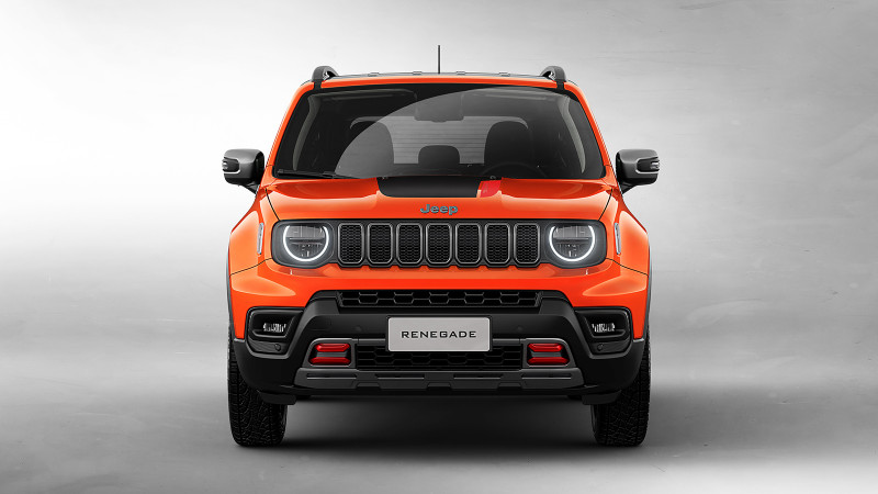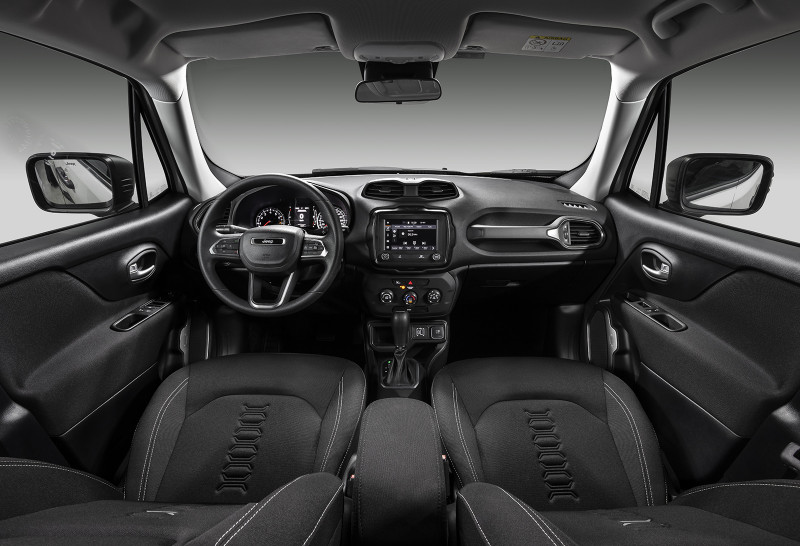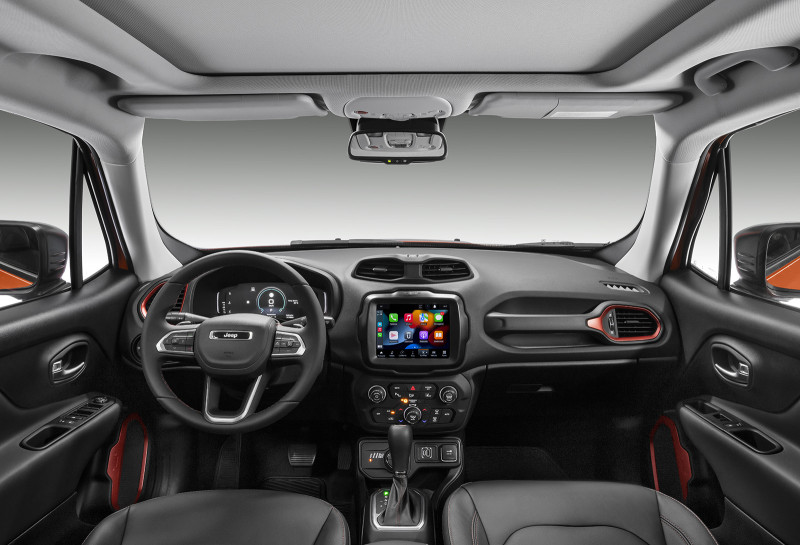 Por dentro, traz um volante redesenhado - assim como no Compass e Commander - e adornado pelo badge Jeep. O Novo Jeep Renegade será oferecido em sete cores, sendo três novas para o modelo: Granite Crystal, Cinza Sting e a marcante Punk’N Orange, exclusiva da versão Trailhawk. Esse tom de laranja faz uma homenagem tanto à cor de lançamento mundial do modelo quanto ao tom disponível no Jeep Wrangler. As outras quatro tonalidades são Branco Polar, Prata Billet, Azul Jazz e Preto Carbon. Vale dizer que essa última passa a não ser cobrada no Novo Renegade.