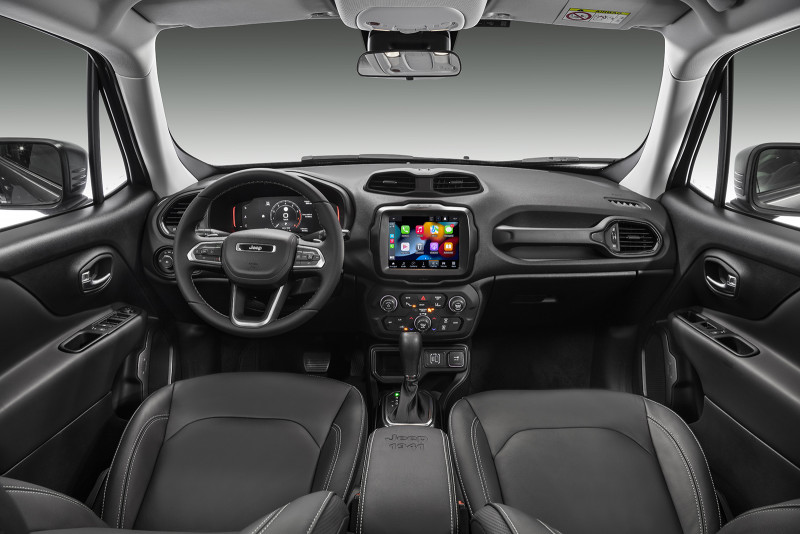 O Novo Jeep Renegade traz ainda sistema multimídia com tela de até 8,4 polegadas com integração sem fio para Android Auto e Apple CarPlay, além de carregador de celular por indução com novo resfriamento pela saída de ar-condicionado direcionada, evitando superaquecimento comum nesse tipo de dispositivo. Outros passageiros ainda podem carregar seus smartphones por meio das três entradas USB, sendo uma do tipo A e uma do tipo C no console central na frente e uma do tipo A para os passageiros do banco traseiro. Isso permite que o usuário possa usar o cabo mais adequado ao seu aparelho, sem a necessidade de adaptadores.