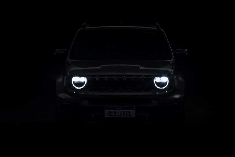 O Renegade recebeu evoluções no design. Começando pelos faróis circulares, que agora são Full LED em todas as versões com luz de direção integrada: ao acionar a seta, toda a borda do conjunto se ilumina, destacando ainda mais o veículo ao mesmo tempo em que aumenta a segurança.