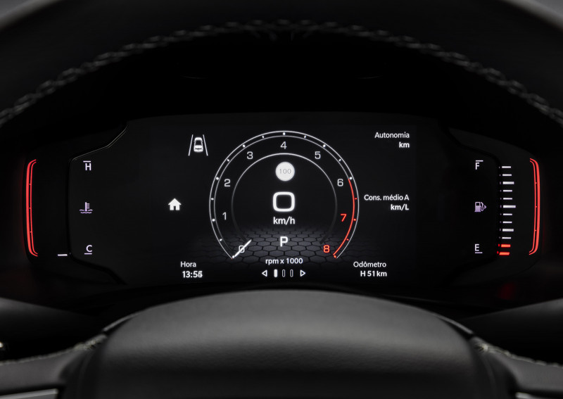 Além de todas essas tecnologias de assistência, o Novo Jeep Renegade traz quadro de instrumentos com opção Full Digital de 7” com tela customizável que pode ser ajustada conforme o desejo do motorista. Nele é possível ver parâmetros como pressão do turbo, percentual de potência enviada às rodas e até a força G.