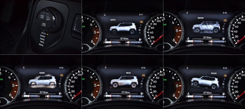 Especificamente na versão Trailhawk, existe uma diferença expressiva no painel de instrumentos. Entre os marcadores de velocidade e conta-giros, existe uma tela colorida multifuncional de TFT de 7 polegadas. Ela é a maior do segmento, e permite acessar diversas informações sobre o carro, que vão muito além de um simples computador de bordo. O motorista pode acessar enorme gama de opções de configuração do veículo, e até escolher quais dados vão aparecer nessa tela. Tudo isso é feito pelos botões presentes no volante multifuncional.
