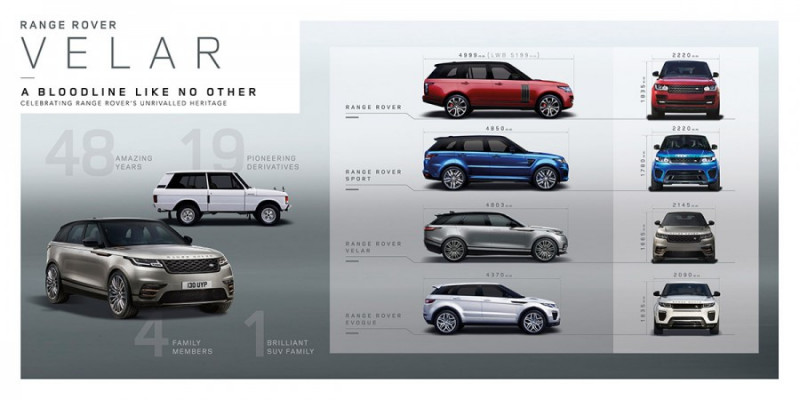 A Land Rover, marca britânica de SUVs premium apresentou o mais novo membro da família Range Rover, o Range Rover Velar. O modelo é posicionado entre o Range Rover Evoque e o Range Rover Sport. O novo veículo chega ao mercado global até o final deste ano. Ainda não há previsão para sua chegada ao mercado brasileiro