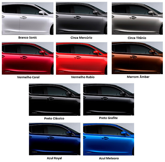 Antes disponível nas cores Branco Sonic, Cinza Mercúrio, Preto Clássico e Preto Grafite, o CT 200h passa a contar também com novas opções de cores externas no modelo 2018. São elas: Cinza Titânio, Vermelho Coral, Vermelho Rúbio, Marrom Âmbar, Azul Royal e Azul Meteoro.