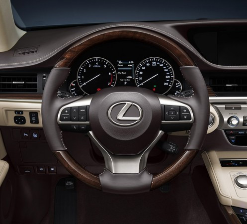 O novo desenho frontal do ES350 2016 valoriza a elegância do sedan. A grade do tipo Spindle agora conta com acabamento cromado e extremidades das barras laterais chanfradas, que dão aspecto tridimensional ao veículo. Na traseira, os escapamentos duplos cromados agora apresentam formato diamante, o mesmo utilizado no modelo NX 200t. A parte inferior do para-choque traseiro foi alargada. O acabamento cromado do porta-malas foi integrado aos faróis traseiros.