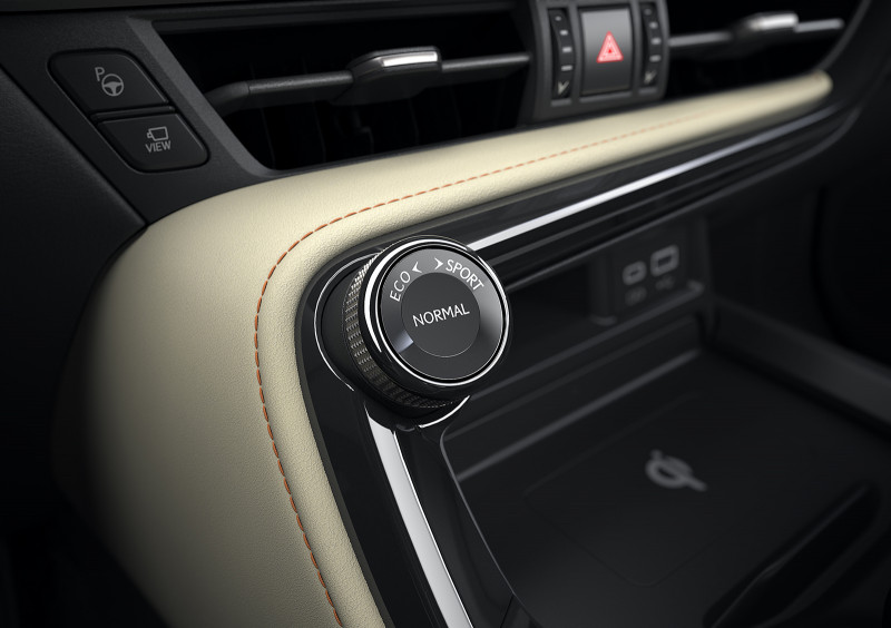 No interior do modelo, o Lexus respeita de forma fiel o compromisso com os princípios da hospitalidade Omotenashi, com qualidade artesanal que somente os Takumis, mestres artesãos da marca, conseguem realizar. O acabamento em couro reveste o volante e a manopla de transmissão, além das partes em couro ecológico premium nas portas, painel e console central, que obteve reposicionamento do câmbio automático e porta-objetos, incluindo os comandos de condução.