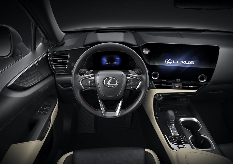 O condutor conta com volante de três raios, com ajustes elétricos de profundidade e altura, revestimento em couro, além de paddle shifts para aprimorar a experiência de condução esportiva. O NX também dispõe de funções de controle de áudio, voz, computador de bordo, telefone e acesso às tecnologias do LSS+ 3.0 como o controle de velocidade de cruzeiro adaptativo e sistema de alerta de mudança de faixa.