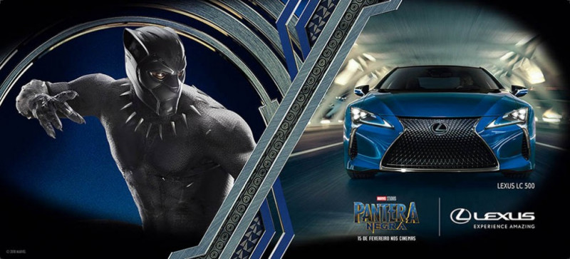 A Lexus, em parceria com a Marvel Studios, entrou em cena nos cinemas, na estreia de “Pantera Negra”, da Marvel Studios. A participação da marca de luxo no longa se dá pela aparição do emblemático cupê esportivo LC 500, que auxilia T’Challa, o Pantera Negra, em uma de suas missões.