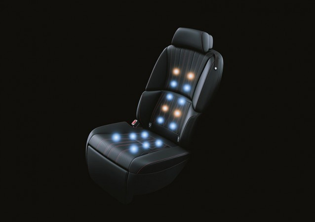 Nos bancos de trás há função “relaxamento”, equipadas com bolsas de ar integradas no encosto e na almofada do assento. Elas são infladas para aplicar pressão estrategicamente ao corpo do ocupante, ao mesmo tempo em que aplicam calor nas áreas do ombro e da parte inferior das costas. O ocupante pode selecionar entre três programas: relaxar, alongar e simples. São quatro para áreas específicas: tronco superior, tronco inferior, ombros e lombar. Todos os bancos também acompanham função de massagem shiatsu.