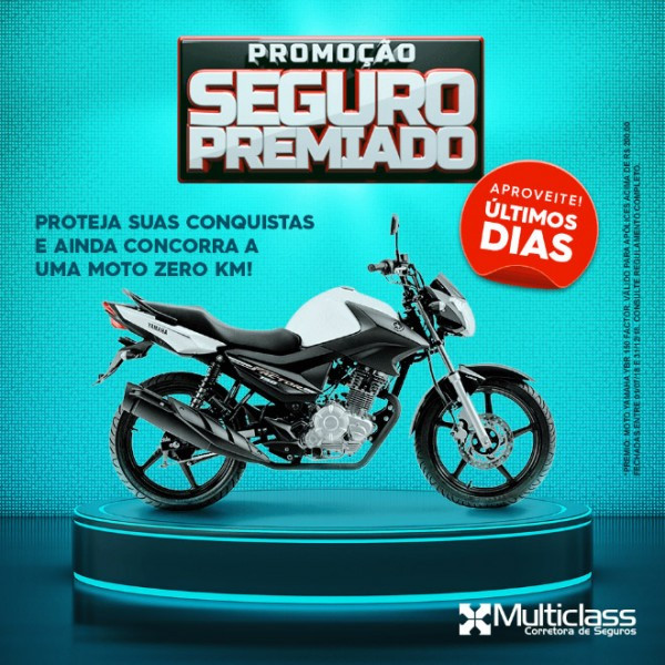 Com mais de 10 anos atuando no mercado, a corretora trabalha com todos os tipos de seguros. Além disso a corretora está com uma promoção até o final do ano que sorteará uma moto Yamaha YBR 150 Factor entre seus clientes. E para participar é muito fácil.