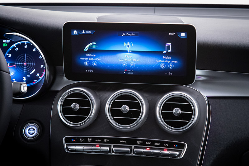 Agora mais conectado, o novo GLC conta com a tecnologia MBUX, inédita na família de utilitários esportivos da marca, que permite diversas possibilidades de controle de voz, desde ajuste do ar-condicionado até abertura do teto solar. A tela de 10,25 polegas touchscreen proporciona mais conforto ao condutor e facilita a visualização e ativação das funções disponíveis no modelo. Além disso, as duas versões já contam com a nova geração de volante multifuncional mais completo. Outra novidade é a tecnologia para carregamento de celular por indução, que dispensa o uso de cabos.