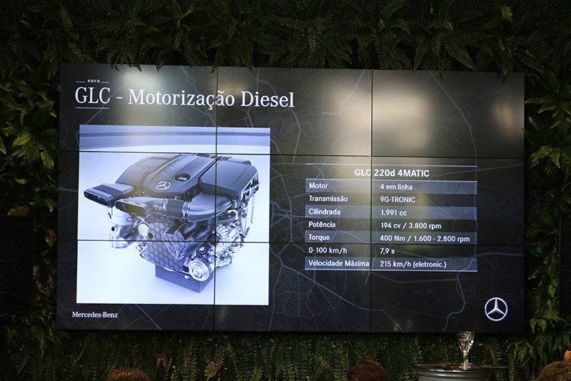 A nova geração do GLC chega na rede de concessionários de todo o País com a inédita motorização 220 d (diesel), que conta com transmissão 9G-TRONIC, 194 cv de potência e velocidade máxima de 215 km/h controlado eletronicamente. O modelo faz de 0 a 100 km em apenas 7,9 segundos e oferece, pela primeira vez em um SUV da marca, a tecnologia MBUX – Mercedes-Benz User Experience. As versões diesel também trazem uma suspensão 18 mm além de modo de condução específico para o off-road.