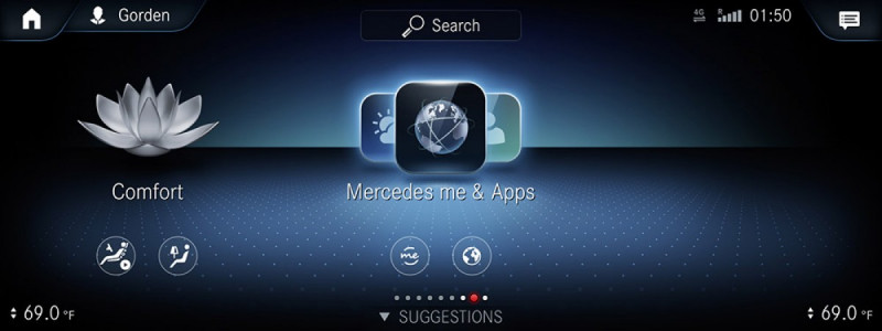 O sistema é acompanhado por um cockpit com telas integradas de alta resolução, pela primeira vez com a opção de controle por toque (touch screen). O display de navegação apresenta tecnologia de realidade aumentada, além de controle de voz inteligente para todas as funcionalidades com reconhecimento de fala, que pode ser ativado com as palavras-chave “Hey Mercedes”.