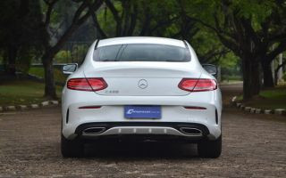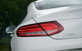 O C250 Coupé Sport vem também equipado de faróis LED comandados pelo sistema dinâmico “Intelligent Light System”. Sua traseira se diferencia do sedã, mas remete ao Classe S Coupé. O escapamento faz parte do pacote visual AMG: com duas ponteiras visíveis ligadas por um friso cromado, se integra à parte inferior do para-choque, reforçando o caráter esportivo do modelo.