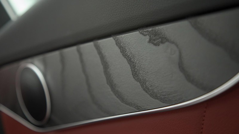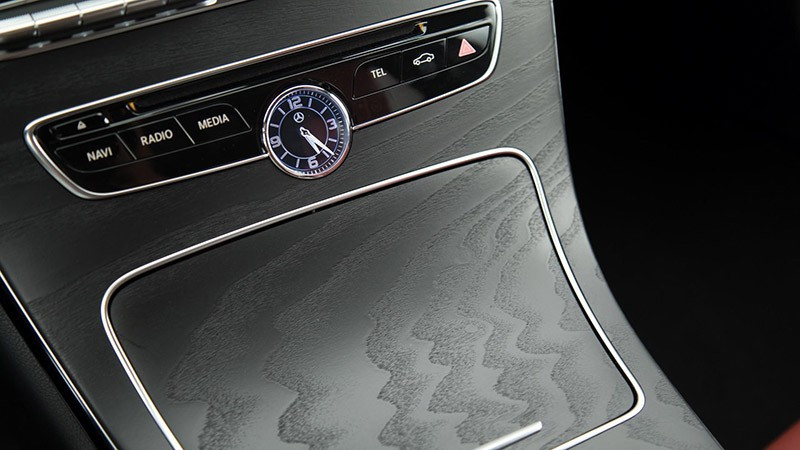 Internamente o tom preto também está presente no revestimento de madeira no painel. O volante tem bom apoio para as mãos, ajuste elétrico de altura e profundidade e base reta.