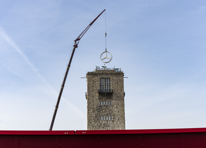 A tampa do radiador imediatamente se tornou um pedestal perfeito para a nova marca Mercedes. A própria estrela - sem o anel circundante – já era conhecida há uma década, já que a DMG solicitou seu registro em 1909, e foi inscrito no registro de marcas em 1911. Uma estrela Mercedes muito especial com um diâmetro impressionante de cinco metros pode ser vista atualmente em frente ao Museu Mercedes-Benz: a estrela da torre da estação de Stuttgart está temporariamente emprestada enquanto ocorre a reconstrução e renovação do edifício da estação.