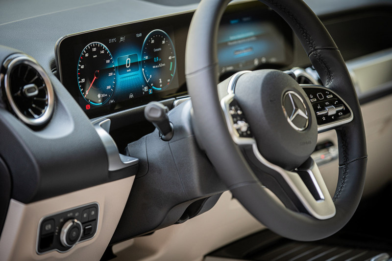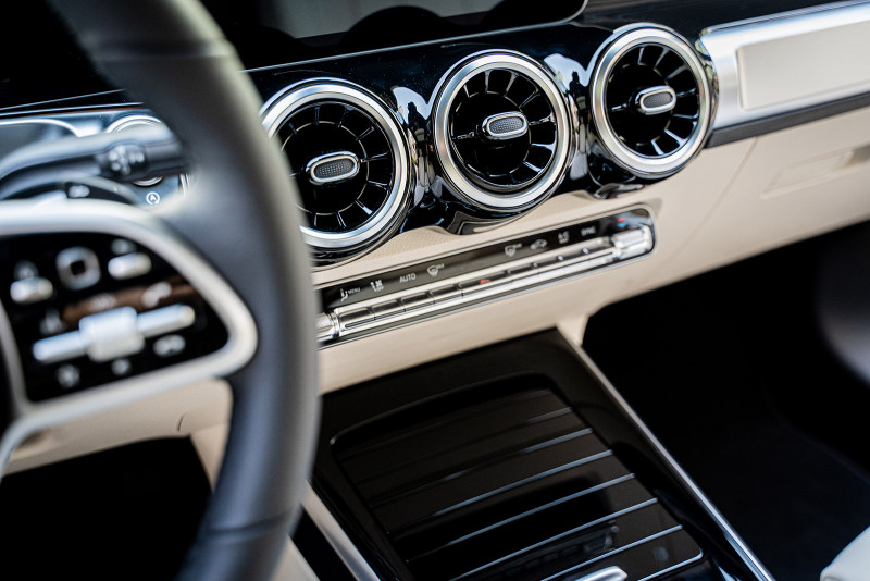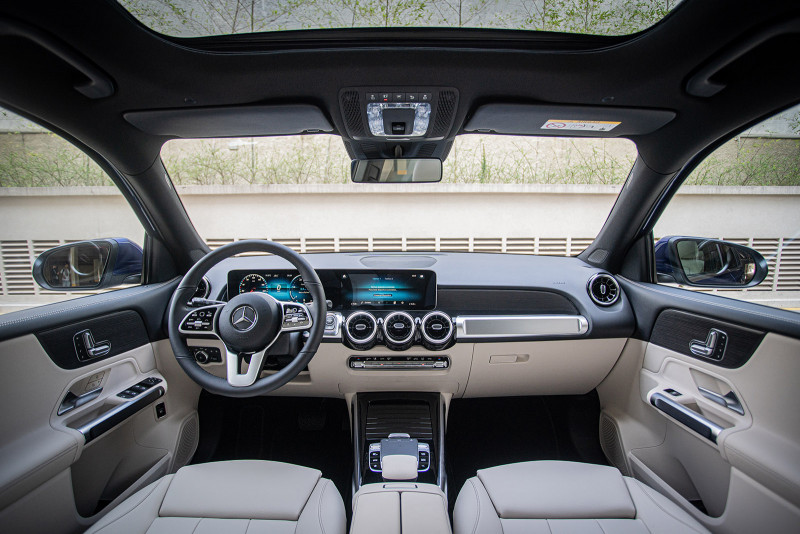 O interior do Mercedes-Benz GLB traz vários refinamentos. O painel de instrumentos consiste em uma única peça, que tem recortes óticos nas áreas do motorista e do passageiro da frente. O condutor fica em frente a um cockpit formado por uma tela panorâmica, com controles e display executados por meio do MBUX (Mercedes-Benz User Experience).