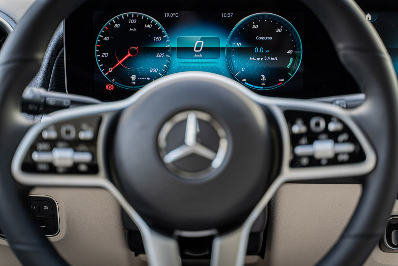 O modelo também apresenta o sistema de informação e entretenimento MBUX (Mercedes-Benz User Experience). Entre as principais vantagens da tecnologia, vale destacar o poderoso computador, telas e gráficos brilhantes, mostradores individualizáveis e controle vocal que pode ser ativado com a chamada "Ei, Mercedes".