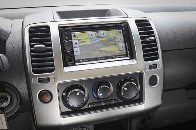 O sistema multimídia da Nissan Frontier SV Attack 4x4 conta com tela colorida de 6.2 polegadas, reprodutor de DVD, conectividade Bluetooth (streaming de áudio e viva-voz para celular) e navegação por GPS. O equipamento também reproduz áudio e vídeo por meio de USB, e trabalha em conjunto com a câmera de ré.