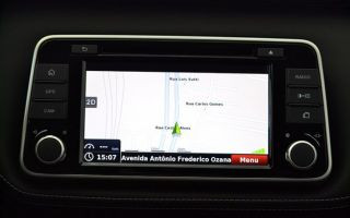 Por fim, existe a versão SL com câmbio Xtronic CVT. Essa versão pode contar com um inédito sistema de alerta de colisão frontal com assistente inteligente de frenagem. É parecido com o sistema já disponível no sedan Sentra SL, porém agora o Kicks pode realizar uma frenagem parcial para evitar o impacto. Por enquanto, um equipamento exclusivo do Kicks, na categoria.
