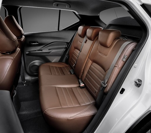 Em relação ao espaço interno, a distância entre eixos de 2,61 m garante ao Kicks um bom espaço para as pernas dos ocupantes, entre os melhores da categoria. O porta-malas, com 432 litros também se mostra adequado à proposta do carro.