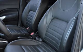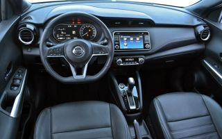 O interior do Kicks tem uma boa qualidade de acabamento e isolamento acústico. Aliás, nota-se uma melhoria quando comparado aos produtos March e Versa. Além dos bancos, existe acabamento em couro no painel e nas portas. Um dos destaques fica por conta de existirem três opções de cores para o acabamento de couro: Preto, Macchiato (marrom) e Sand (bege).