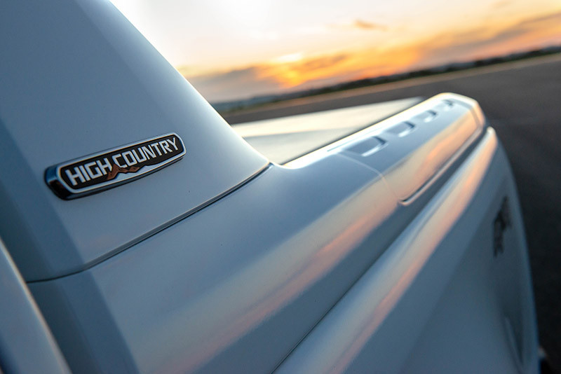 Na lateral, a S10 High Country traz novas rodas de aro 18. Ela combina as bordas usinadas com o centro e os raios em preto brilhante. Outro aspecto lateral é o santo Antonio envolvente, que traz mais volume para a caçamba (1.329 litros), a maior da categoria. Outra mudança é o amortecedor da tampa traseira, que torna a operação de manuseio muito mais suave. O item é ofertado como acessório e serve às demais versões (LS, Advantage, LT e LTZ). Estes modelos acompanham as evoluções estéticas, mas com diferenças de acabamento, como a grade com elementos cromados e o logo da Chevrolet no centro, além de rodas específicas.