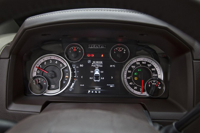 Para o moto rista ter todas as informações sobre o funcionamento da Ram 2500 Laramie 2016, o quadro de instrumentos (que inclui manômetro de óleo e voltímetro) apresenta uma nova tela colorida de TFT de 7 polegadas, com diversas configurações. Ela pode mostrar desde dados simples como a temperatura externa, até números como o porcentual da vida útil do filtro de combustível, além de mostradores virtuais, como da pressão do turbocompressor.