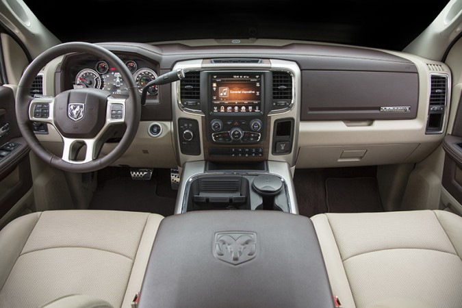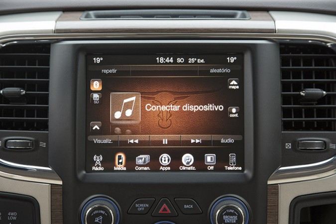 Ainda maior é a tela de 8,4 polegadas do sistema multimídia Uconnect (já presente em outros modelos da FCA, como Jeep e Fiat) que também faz sua estreia na Ram 2500 no Brasil. Porém na RAM ele chega mais evoluído permitindo uma gama maior de configurações. Por meio dela se tem acesso, entre outras coisas, ao navegador GPS, às configurações do veículo – a exemplo de opções da câmera de ré e do sistema de iluminação externa e interna –, e a recursos como a ventilação dos bancos dianteiros, que também podem ser aquecidos e contam com ajustes elétricos (duas memórias para o moto rista). Os assentos traseiros também tem aquecimento, bem como o volante. O conjunto de áudio é da marca Alpine, com nove alto-falantes (incluindo dois no teto) e um subwoofer.