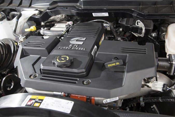 O principal destaque da nova RAM 2500 é o moto r turbodiesel Cummins de seis cilindros em linha, 24 válvulas e 6,7 litros, recalibrado para ficar ter ganhos em potência e torque. A potência, que era de 310 cv, subiu 4%, atingindo 330 cv. O maior ganho foi no torque, que passou de 84 para 104 kgfm, um aumento de 23,8%. Isso fez a capacidade de reboque, uma das grandes vocações da picape, crescer 41%, de 5.500 para 7.750 kg – com kit de engate específico da Mopar.