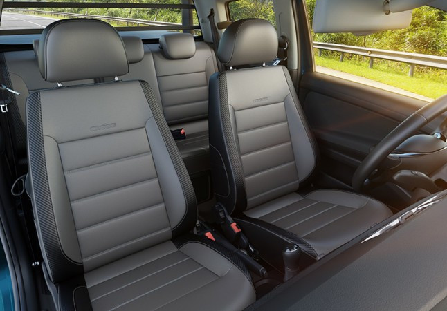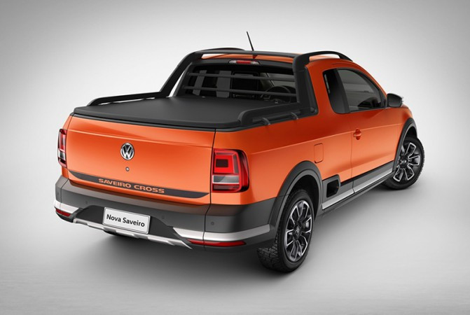 Cross - Essa versão é exclusivamente equipada com o moto r 1.6 litro – 16 válvulas de 120 cv e traz, além de todos os itens da configuração Highline, acrescenta: volante multifuncional revestido de couro, coluna de direção ajustável em altura e profundidade, exclusiva rodas de liga leve de 15 polegadas (com pneus 205/60 R15) e faróis com a função Coming & Leaving Home. A versão Cross incorpora de série o sistema de controle eletrônico de estabilidade (ESC). Como opcionais, a Nova Saveiro Cross oferece suporte para celular, módulo navegação (Discover Media), pneus 205/60 R15 All Terrain (off-road), espelho retrovisor interno eletrocrômico (anti-ofuscante), controlador eletrônico de velocidade, sensores crepuscular e de chuva, revestimento dos bancos em couro sintético Native e sensores de estacionamento dianteiros e traseiros “Park Pilot”, entre outros itens.