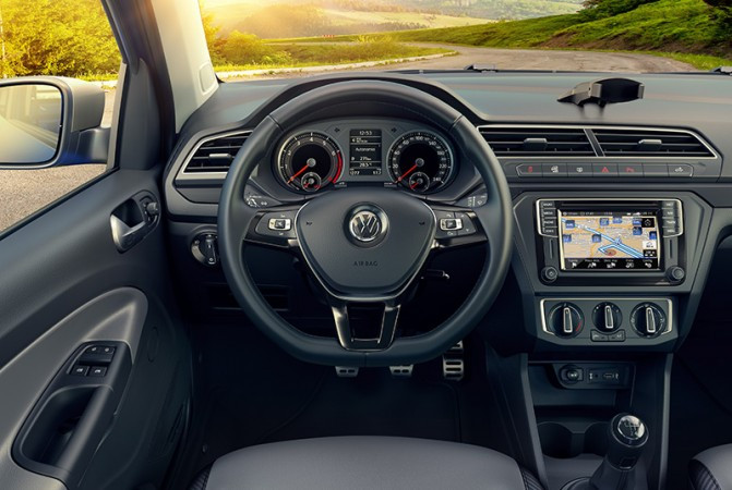 A Nova Saveiro também incorpora um novo painel e um volante multifuncional, semelhante ao do Golf. O instrumento combinado também é inteiramente novo e ganhou iluminação de LEDs em branco.