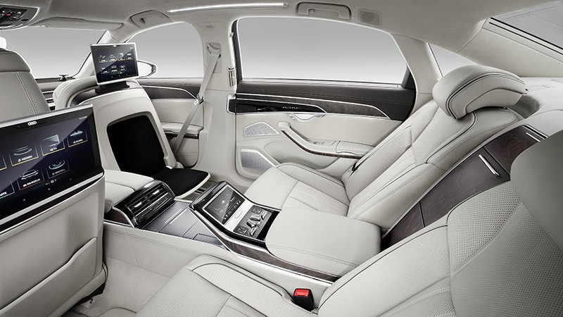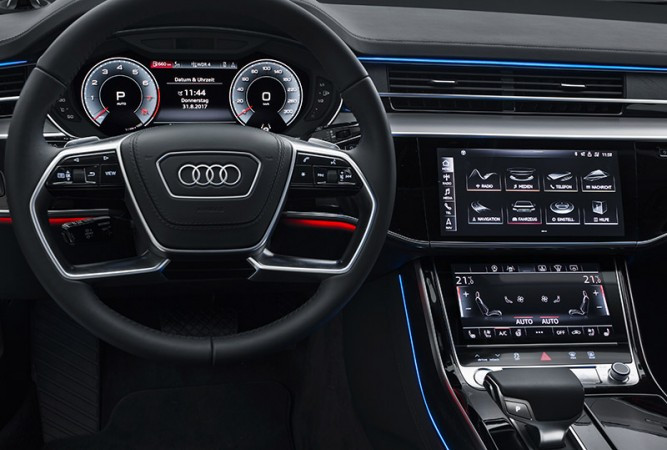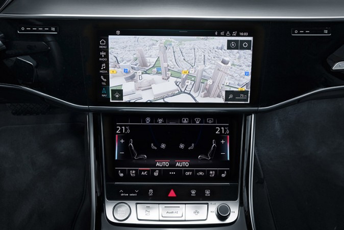 O novo A8 será o primeiro carro com condução autônoma nível 3 a ser produzido em série. O assistente de trânsito Audi AI assume controle da condução quando o trânsito está lento, até 60 km/h, em rodovias onde uma barreira física separa as duas faixas da pista. O sistema é ativado usando o botão AI no console central.