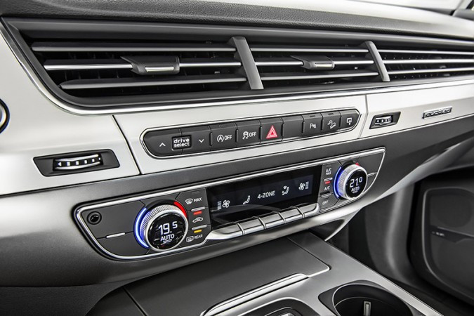 O Q7 traz de série o novo ar-condicionado com quatro zonas, com os mostradores de temperatura incorporados aos controles rotativos. Um display TFT mostra as funções. Com um simples toque nos interruptores, os gráficos mudam para informar as funções escolhidas. Os passageiros de trás têm seus próprios controles.