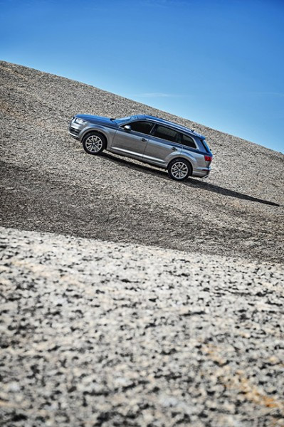 Como todo carro que se propõe a ser um SUV, o Q7 conta com sistema de tração integral permanente quattro. O conjunto propulsor é formado por uma transmissão automática Tiptronic de oito marchas e o novo moto r V6 de 3.0 litros TFSI com duplo compressor mecânico. Mesmo pesando 1.970 kg e com 5,05 metros de comprimento, o SUV é capaz de acelerar até 100 km/h em apenas 6,1 segundos, e ainda alcança a velocidade máxima de 250 km/h.