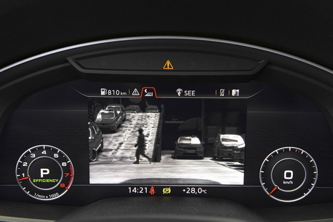Disponível no Pacote Tecnológico opcional, o assistente de visão noturna usa uma câmera infravermelha de longo alcance que “encherga” o calor irradiado por objetos, carros e pessoas. A informação, convertida em imagens em preto e branco, é exibida no centro do cockpit virtual. O ambiente mais frio aparece escuro, enquanto animais e pessoas são mostrados com muito brilho. O sistema tem alcance de até 300 metros e pode detectar pessoas e grandes animais a cerca de 100 metros, destacando-os com marcadores amarelos.