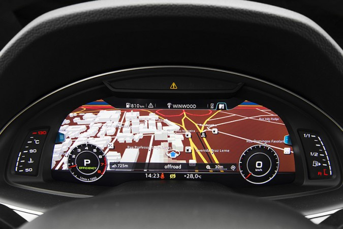 Junto ao sistema MMI navigation plus com MMI all-in-touch, o Q7 traz o Audi Virtual Cockpit. Trata-se de uma tela de 12,3 polegadas com 1.440 x 540 pixels de resolução, que exibe imagens extremamente nítidas, substituindo os mostradores tradicionais.