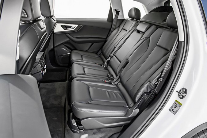 Opcionalmente, a Audi fornece a opção de sete lugares para o Q7. Seus encostos, divididos 50/50, podem ser posicionados eletricamente na vertical ao apertar um botão ou rebatidos na horizontal, integrando-se ao assolho do porta-malas. Para garantir uma entrada confortável para a terceira fileira, a Audi também equipa os assentos laterais da segunda fila com um eficiente mecanismo: eles podem ser dobrados em uma forma compacta e posicionados verticalmente.