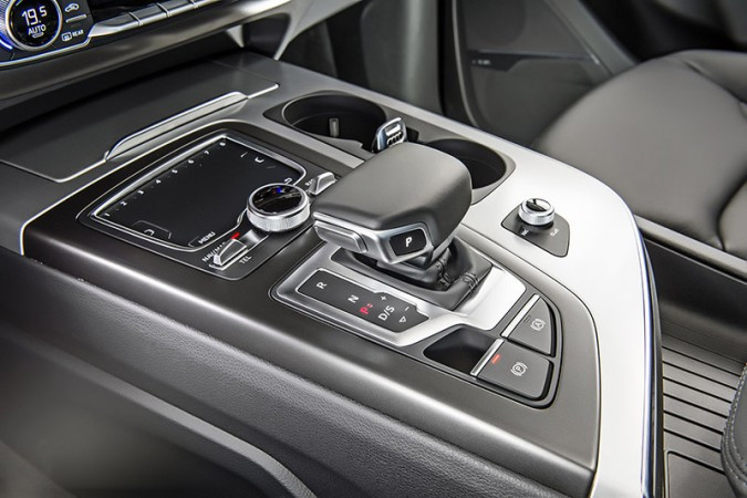 A ergonomia foi pensada para facilitar a vida do moto rista. Assim, o console é inclinado como um painel de controle, com a alavanca do câmbio Tiptronic e o comando do MMI all-in-touch à esquerda e o controle de volume do sistema de som e porta-copos à direita.