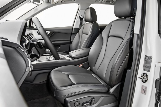 O sistema de bancos do novo Q7 foi totalmente reprojetado. Forrados com couro, os assentos oferecem um confortável posicionamento vertical e o melhor apoio lateral. Os apoios de cabeça podem ser ajustados verticalmente, e (opcionalmente) também na horizontal para frente. Os bancos dianteiros têm ajustes elétricos e suporte lombar, com memória para o do moto rista.