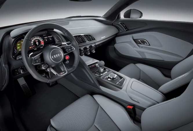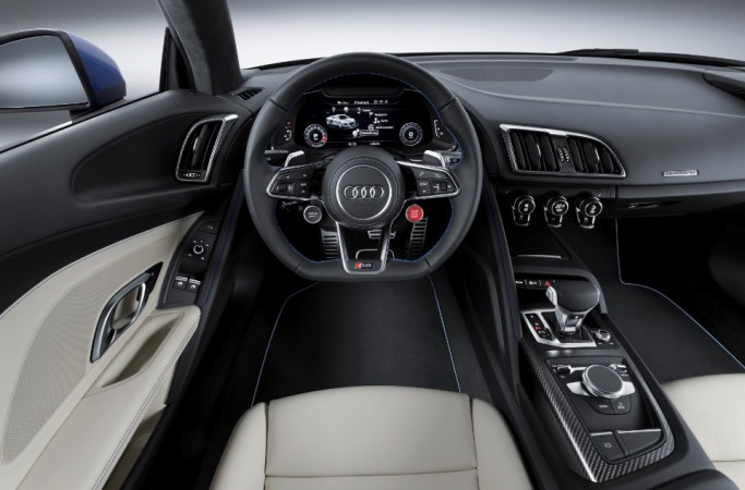 No novo cockpit virtual da Audi, os mostradores são digitais. Os controles mais importantes estão agrupados em conjuntos de botões no volante. No interior, o moto rista tem a impressão de estar dentro de um carro de corrida. Os controles do ar-condicionado reforçam a simplicidade do painel de controle, com efeito flutuante. O sistema MMI navigation plus com MMI touch é standard.