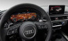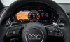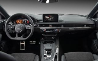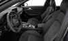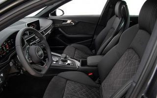 O interior na cor preta destaca o caráter esportivo do RS 4 Avant e os assentos têm costura em padrão de colmeia. O volante multifuncional com base plana, a estrutura do câmbio automático e as faixas iluminadas do painel trazem o emblema RS. No Audi Virtual Cockpit, gráficos específicos da linha RS fornecem informações sobre força G, pressão dos pneus e temperatura, bem como potência e torque. O temporizador de voltas é capaz de memorizar até 99 voltas e comparar os tempos entre si. Status de componentes técnicos como a temperatura do óleo, do motor e do fluido de transmissão e a pressão do ar nos pneus são apresentados no painel.