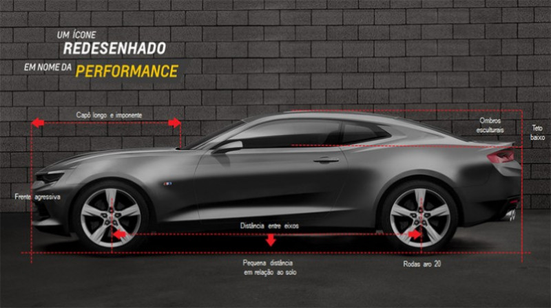 O novo Camaro teve suas dimensões alteradas. Ele ficou mais baixo e compacto que o anterior, visando melhor performance.
