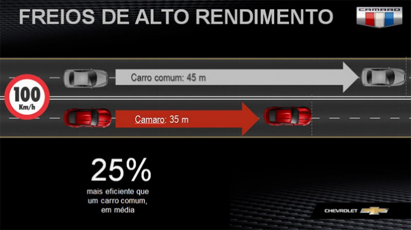 O Camaro ainda traz um sistema de ressonadores que intensifica o ronco do som do moto r dentro da cabine em giros mais altos – uma experiência única para os admiradores de carros esportivos.