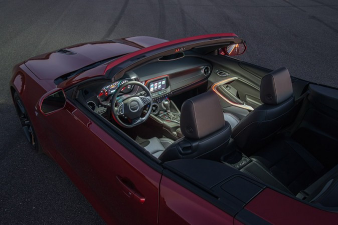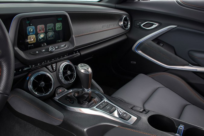 A cabine do Camaro 2017 está mais refinada, com recursos como: painel customizável, Heads-up Display, multimídia Mylink compatível com Android Auto e Apple Car Play, alto-falantes Bose, carregador wireless para smartphone, volante com aquecimento, bancos dianteiros com ventilação + ajuste elétrico e memória, ar-condicionado dual zone, além de partida remota da ignição.