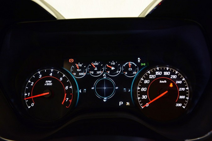Seguindo o tema externo com inspiração no clássico, com adequações modernas, o quadro de instrumentos traz o “canhão” do conta-giros à esquerda e o do velocímetro à direita, ambos analógicos. Porém, uma novidade é a tela de alta definição, de oito polegadas, entre os dois mostradores. Configurável, a tela pode exibir informações adicionais de performance, de navegação, do multimídia e do computador de bordo. As seguintes informações estão disponíveis: