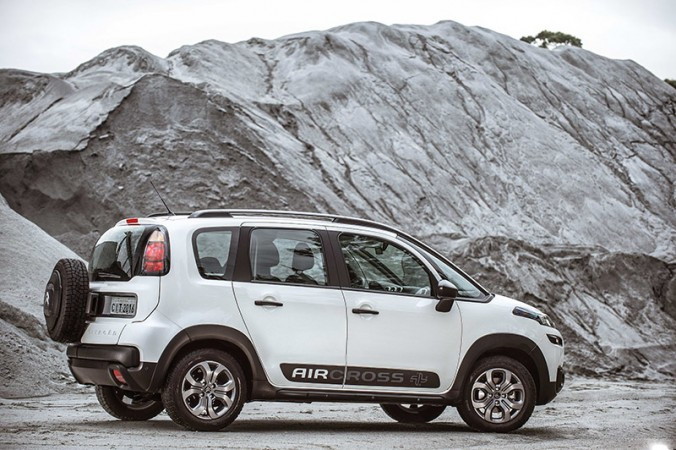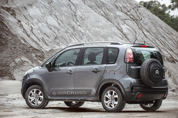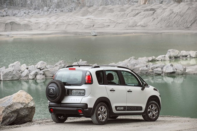 Na traseira, o Aircross recebeu novos para-choques, com destaque para a luz de neblina e de ré, além de câmera de ré integrada. O estepe permanece à esquerda da tampa do porta-malas e ganhou um novo acabamento. O conjunto das lanternas traseiras tem novo acabamento em máscara negra, para todas as versões.