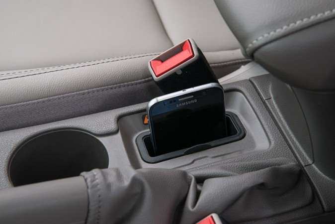 Outra inovação é compartimento no console central com tecnologia capaz de carregar o smartphone via indução eletromagnética. Basta colocar o telefone compatível com essa tecnologia neste espaço para que sua bateria seja recarregada sem a necessidade de fios.