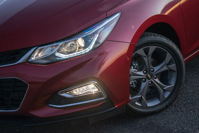 A parte frontal do Cruze hatch traz faróis e grade superior integrados, com o conceito “dual grille”, com entradas de ar bipartidas. O para-choque dianteiro também é estilo “RS”, com aletas exclusivas, faróis auxiliares horizontais e spoiler integrado à base pintado em preto fosco.